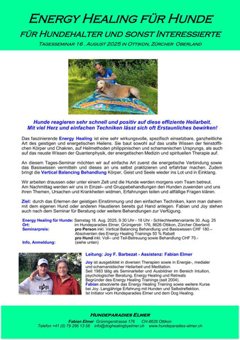 Unser Hundeheiler Fabian Elmer kümmert sich liebevoll um Ihren Vierbeiner. Er behandelt und heilt Ihren Vierbeiner neu auch im Zürcher Oberland