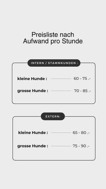 Faire Preise und jahrelange Hundeerfahrung gewährleisten Ihrem Hund eine einfühlsame Behandlung von einer Person!